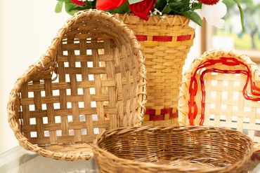 Basketry is the process of weaving any pliable material into a variety of shapes for a range of purposes, to include vessels used to store grain, gather flowers or vegetables, collect dirty laundry, hold napkins, and even form gondolas for hot air balloons. Because baskets provide functional vessels from readily available, but biodegradable, materials, basketry has been a traditional craft found around the globe and across multiple cultures for millennia, but very few old specimens have been discovered. To date, the oldest extant basket discovered has been determined to be over 10,000 years old, and was found in the desert near the Dead Sea. Because long leaf pines are so prevalent in the Florida Panhandle, pine needle basketry very popular. Less widely practiced, due to the labor involved, are baskets woven from split or shaved ash strips. A similar look is achieved with reed baskets, the most widely-practiced technique today. Reed can be fashioned into various shapes for weaving with, like round, flat, flat-oval, or flat-round. Thicker reed is used for furniture, and thinner for small container