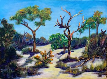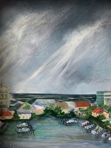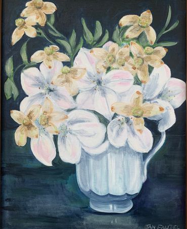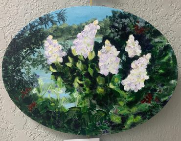 Jan Faubel has a love for landscapes, especially those capturing areas of New York State’s Finger Lakes Region, where she grew up, as well as East Anglia, just northeast of London, England, where she lived for several years. Many paintings are inspired by memories. Additionally, she has painted many views of Okaloosa Island, Destin Harbor, plus venues in and around DeFuniak Springs. Jan’s garden offers a wide range of subjects, including, flowers, veggies, and lawn décor
